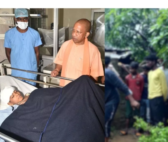 देवरिया हत्याकांड में घायल बच्चे को देखने पहुंचे सीएम योगी