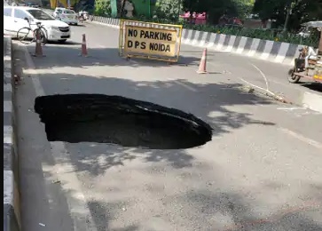 बताया गया कि सेक्टर-27 की डीप सीवर लाइन के फटने से लीकेज था। इस वजह से सड़क पर अंदर से कटान हो गया। इस कारण ये धंस गई। इसमें पानी भरा हुआ दिख रहा है।