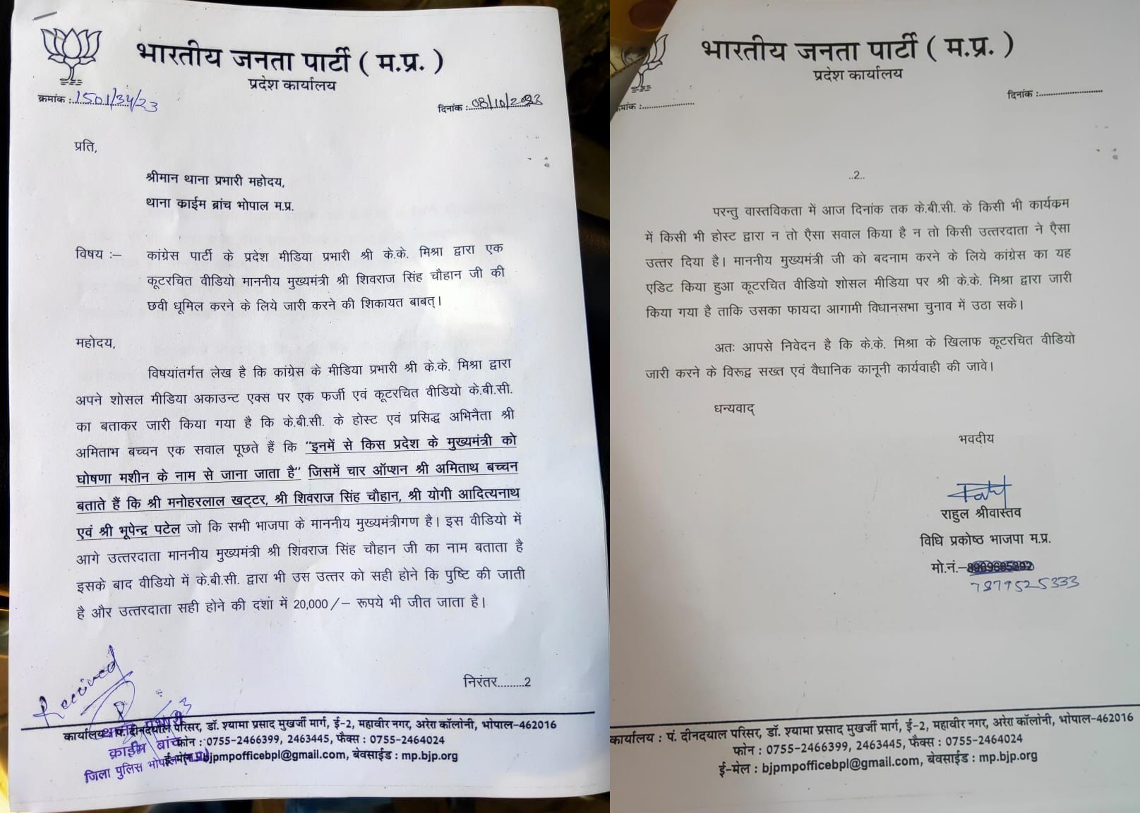 मिश्रा ने यह वीडियो एक्स पर साझा किया था। पार्टी के प्रदेश प्रवक्ता पंकज चतुर्वेदी ने बताया कि कांग्रेस के मीडिया विभाग के अध्यक्ष के.के. मिश्रा द्वारा रविवार की सुबह अपने सोशल मीडिया अकाउंट एक्स (ट्विटर) पर एक फर्जी एवं कूटरचित वीडियो केबीसी का बताकर जारी किया।