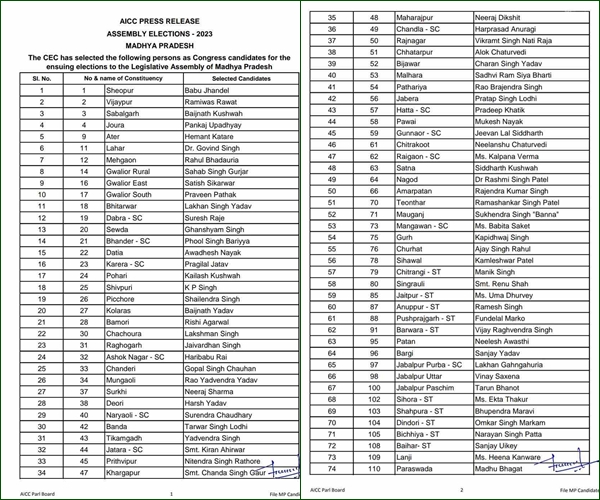 कांग्रेस ने जैसे पहले घोषणा की थी, उसी के मुताबिक श्राद्ध पक्ष के बाद पार्टी ने 144 उम्मीदवारों की पहली सूची जारी कर दी।