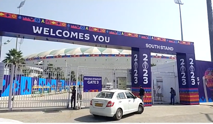 लखनऊ: अटल बिहारी वाजपई इकाना स्टेडियम पहले विश्व कप मैच के लिए तैयार।
