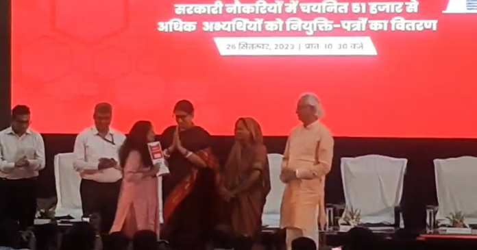 लखनऊ: 9वां रोजगार मेला, स्मृति ज़ूबिन इरानी, वी.के.सिंह, अनुप्रिया पटेल ने नियुक्ति पत्र वितरण कार्यक्रम में भाग लिया, स्वास्थ्य और परिवार कल्याण मंत्रालय सहित विभिन्न मंत्रालयों/विभागों में अभ्यर्थियों का चयन हुआ