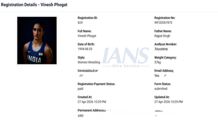 भारतीय कुश्ती महासंघ के अध्यक्ष संजय सिंह ने विनेश के दावों को गलत बताते हुए उनकी रजिस्ट्रेशन की एक कॉपी विशेष रूप से आईएएनएस के साथ साझा की।