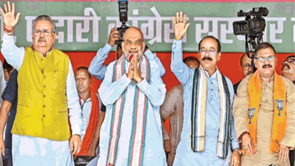 केंद्रीय गृह मंत्री अमित शाह सोमवार को छत्तीसगढ़ के राजनांदगांव में हुई सभा में राज्य की कांग्रेस सरकार पर जमकर बरसे। उन्होंने कहा कि मुख्यमंत्री भूपेश बघेल ने पांच सालों में कुछ नहीं किया। केवल भ्रष्टाचार किया है। छत्तीसगढ़ के भ्रष्टाचार का मार्ग सीधे दिल्ली तक जाता है। छत्तीसगढ़ में इसका एटीएम है। शाह ने भीड़ भरी सभा से कहा कि आप छत्तीसगढ़ में भाजपा की सरकार बनाइए।