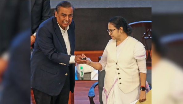 बंगाल ग्लोबल बिजनेस समिट (बीजीबीएस) के मंच से रिलायंस समूह के चेयरमैन मुकेश अंबानी ने मंगलवार को राज्य में 20 हजार करोड़ रुपये का अतिरिक्त निवेश करने की घोषणा के साथ मुख्यमंत्री ममता बनर्जी की भी जमकर तारीफ की। उन्होंने कहा कि आप सचमुच एक अग्नि कन्या हैं। त्याग की अग्नि आपके स्वर्णिम चरित्र को और अधिक उज्ज्वल बनाती है।