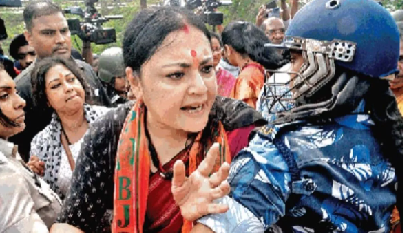 भाजपा की महिला नेताओं को नहीं जाने दिया जा रहा Sandeshkhali, तीखी नोकझोंक के बाद हिरासत में लिया गया