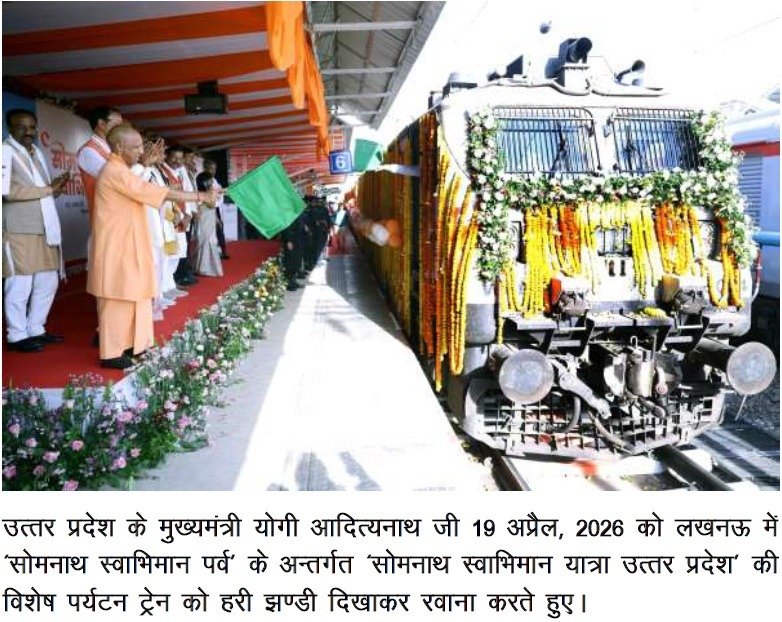 - मुख्यमंत्री ने ‘सोमनाथ स्वाभिमान पर्व’ के अन्तर्गत ‘सोमनाथ स्वाभिमान यात्रा उ0प्र0’ की विशेष ट्रेन को हरी झण्डी दिखाकर रवाना किया