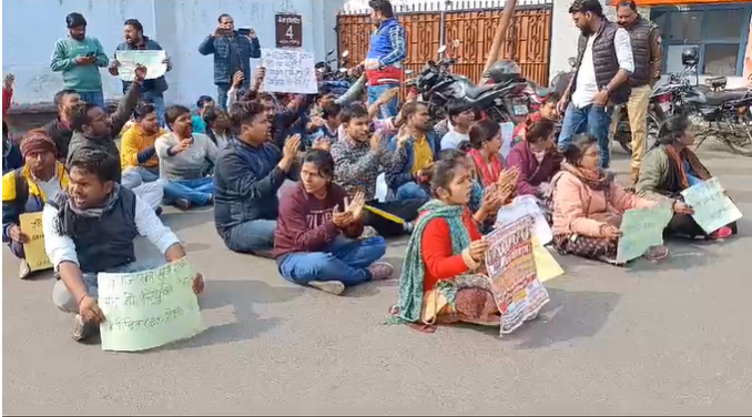 लखनऊ: 69,000 शिक्षक भर्ती अभ्यार्थियों का प्रदर्शन, बेसिक शिक्षा मंत्री के आवास के बाहर धरने पर बैठे अभ्यार्थी