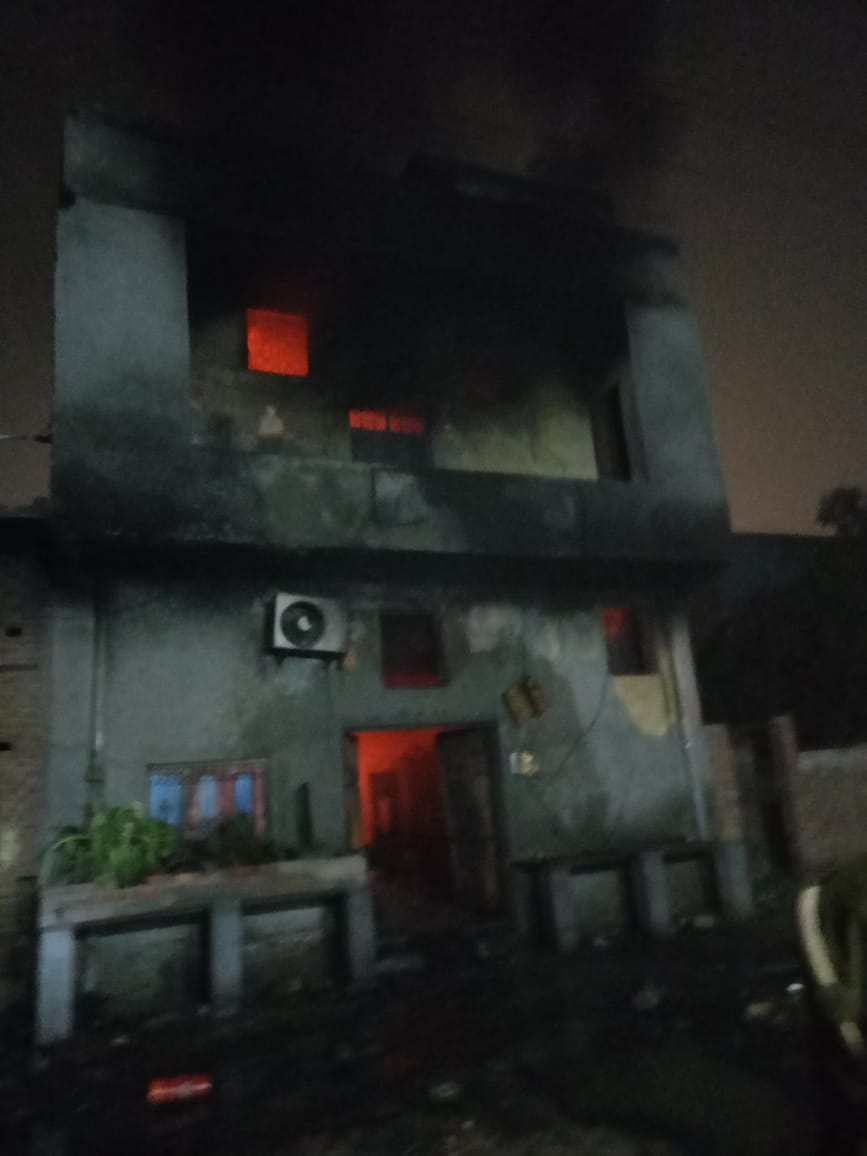 तीनों फायर टेंडर के साथ फायर सर्विस यूनिटस ने मौके पर पहुंचकर देखा कि लगभग 100 वर्ग मीटर में बने दोमंजिला भवन के भू एवं प्रथम दोनों तलों पर आग लगी हुई है।