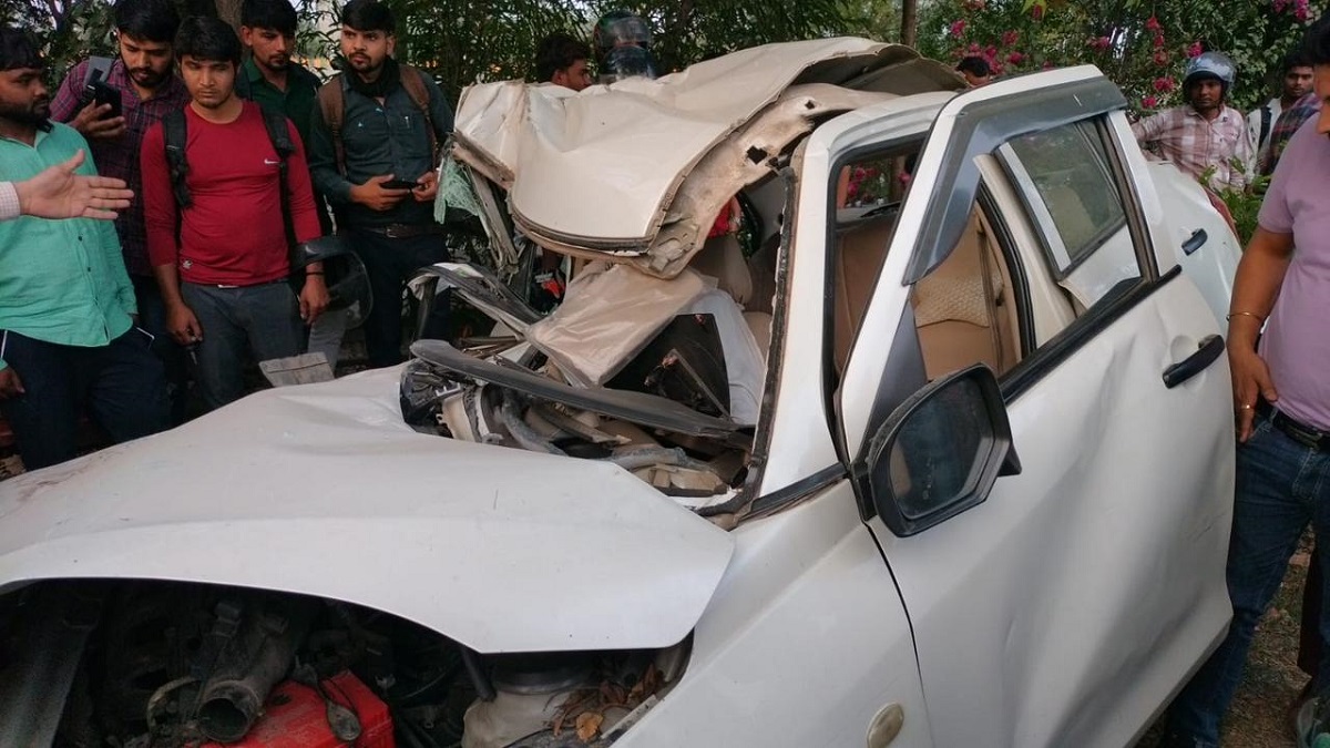 The speeding Maruti Swift car rammed into a stationary truck killing the driver on the spot. Another young passenger was trapped in the car due to the accident.