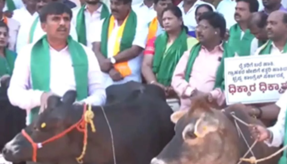 Karnataka Politics: कांग्रेस सरकार पर गाय विरोधी होने का आरोप लगाते हुए भाजपा ने मवेशियों के साथ विरोध प्रदर्शन किया। पार्टी के एक नेता ने कहा कि इसके बाद से इस क्षेत्र में दूध का उत्पादन घट गया है। पत्रकारों से बातचीत में भाजपा के राज्य महासचिव पी राजीव ने आरोप लगाया कि सिद्दमैया सरकार गाय विरोधी है क्योंकि वह बेंगलुरु में कोई गाय नहीं चाहती।