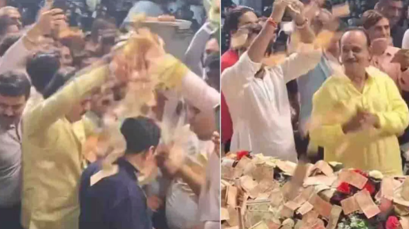 Lok Sabha Election 2024 गुजरात के जूनागढ़ से एक वीडियो सामने आया है। यहां एक लोक डायरा में पहुंचे भाजपा और कांग्रेस प्रत्याशियों पर उनेक समर्थकों ने नोटों की बारिश की। बाल्टी में नोटों को भरकर बारिश की गई। इसका वीडियो भी सोशल मीडिया पर खूब वायरल हो रहा है। चैत्र नवरात्रि के अवसर जूनागढ़ के मोगलधाम में भव्य लोक डायरा का आयोजन किया गया था।