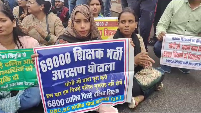 लखनऊ : बसपा सुप्रीमो के कार्यालय पर यूपी उत्तराखंड की बड़ी बैठक चल रही है, 69000 शिक्षक भर्ती मायावती कार्यालय के बाहर आरक्षण के प्रदर्शन के नारे लगा रहे हैं