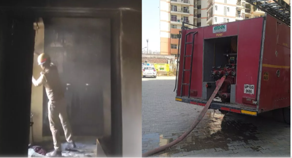 Noida Fire: ग्रेटर नोएडा वेस्ट स्थित देविका गोल्ड होम्ज सोसायटी के टावर डी जी पांच के ग्राउंड फ्लोर के फ्लैट नंबर जीएस आठ में पूजा के दीपक से आग लग गई। सोसायटी के लोग जब ऑफिस के निकल गए थे तब सोसायटी के स्टेट मैनेजर अजय दीक्षित को सूचना मिली कि डीजी पांच टावर में आग लग गई है मौके पर पहुंचे और उन्होंने एओए अध्यक्ष अनुराग खरे को इसकी सूचना दी।
