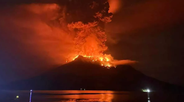 Indonesia: इंडोनेशिया के सुलावेसी द्वीप के उत्तरी किनारे पर एक ज्वालामुखी फटा है। ज्वालामुखी फटने के बाद पिछले 24 घंटों में कम से कम पांच बड़े विस्फोट हुए हैं। रुआंग पर्वत पर विस्फोट के बाद हजारों फीट ऊंची राख की गुबार देखी गई थी। जिसके बाद इंडोनेशियाई अधिकारियों ने बुधवार को सुनामी की चेतावनी जारी की।