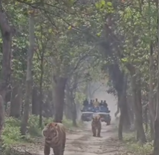 पीलीभीत: दो टाइगर्स को सफारी के सामने अचानक देखकर पर्यटकों की सांसें थमीं की थमी रह गयीं , जिप्सी में सवार लोगों में चीखपुकार मचने लगी तभी जिप्सी चालक ने जिप्सी को तेजी से बैक कर लिया, टाइगर रिजर्व में टाइगर हमेशा अपनी चलहलकदी को लेकर चर्चा में बने रहते हैं,