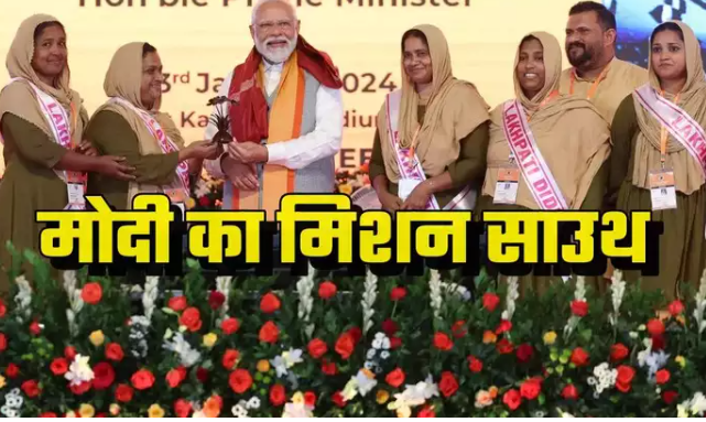 नई दिल्ली : लोकसभा चुनाव में बीजेपी ने अपने लिए ‘अबकी बार 400 पार’ का लक्ष्य दिया है। कार्यकर्ताओं को 50+% का महत्वाकांक्षी टारगेट दिया गया है। लेकिन क्या ये इतना आसान है? खासकर तब जब तमाम राज्यों में बीजेपी की सीटें पहले ही अपने चरम पर हैं यानी अब सीटें बढ़ने से रहीं, हां घट जरूर सकती हैं। ऐसे में बीजेपी लगातार तीसरी बार केंद्र की सत्ता में हैटट्रिक का लक्ष्य कैसे पूरा करेगी? बीजेपी को बखूबी पता है कि लक्ष्य आसान नहीं लेकिन मोदी की अगुआई में पार्टी धीरे-धीरे दक्षिण में भी अपनी पैठ बढ़ा रही है। काशी-तमिल संगमम से लेकर त्रिशूर में महिला संगमम तक, नरेंद्र मोदी चुपके-चुपके दक्षिण में बीजेपी की पैठ बढ़ा रहे हैं। तमिलनाडु दौरे के अगले दिन बुधवार को पीएम मोदी केरल में ‘2 लाख महिलाओं’ की रैली के जरिए दक्षिण भारत में बीजेपी के लोकसभा अभियान का शंखनाद कर चुके हैं।
