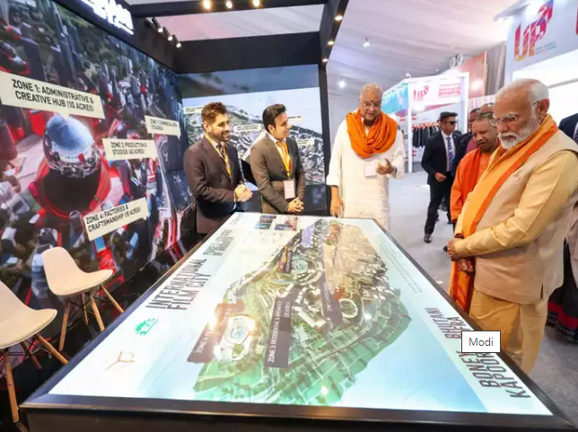UP Film City: यमुना एक्सप्रेसवे इंडस्ट्रियल डेवलपमेंट अथॉरिटी (यीडा) क्षेत्र में प्रदेश की पहली इंटरनेशनल फिल्म सिटी बनने जा रही है। दिग्गज बॉलीवुड डायरेक्टर और प्रोड्यूसर बोनी कपूर और भूटानी ग्रुप मिलकर इसका निर्माण करने जा रहे हैं। जब पीएम फिल्म सिटी के स्टाल पर पहुंचे तो खुद बोनी कपूर ने उन्हें फिल्म सिटी की खासियत के विषय में पूरी जानकारी दी। पीएम मोदी इस स्टाल पर 3 से 4 मिनट तक रहे। उनके साथ सीएम योगी भी मौजूद थे।
